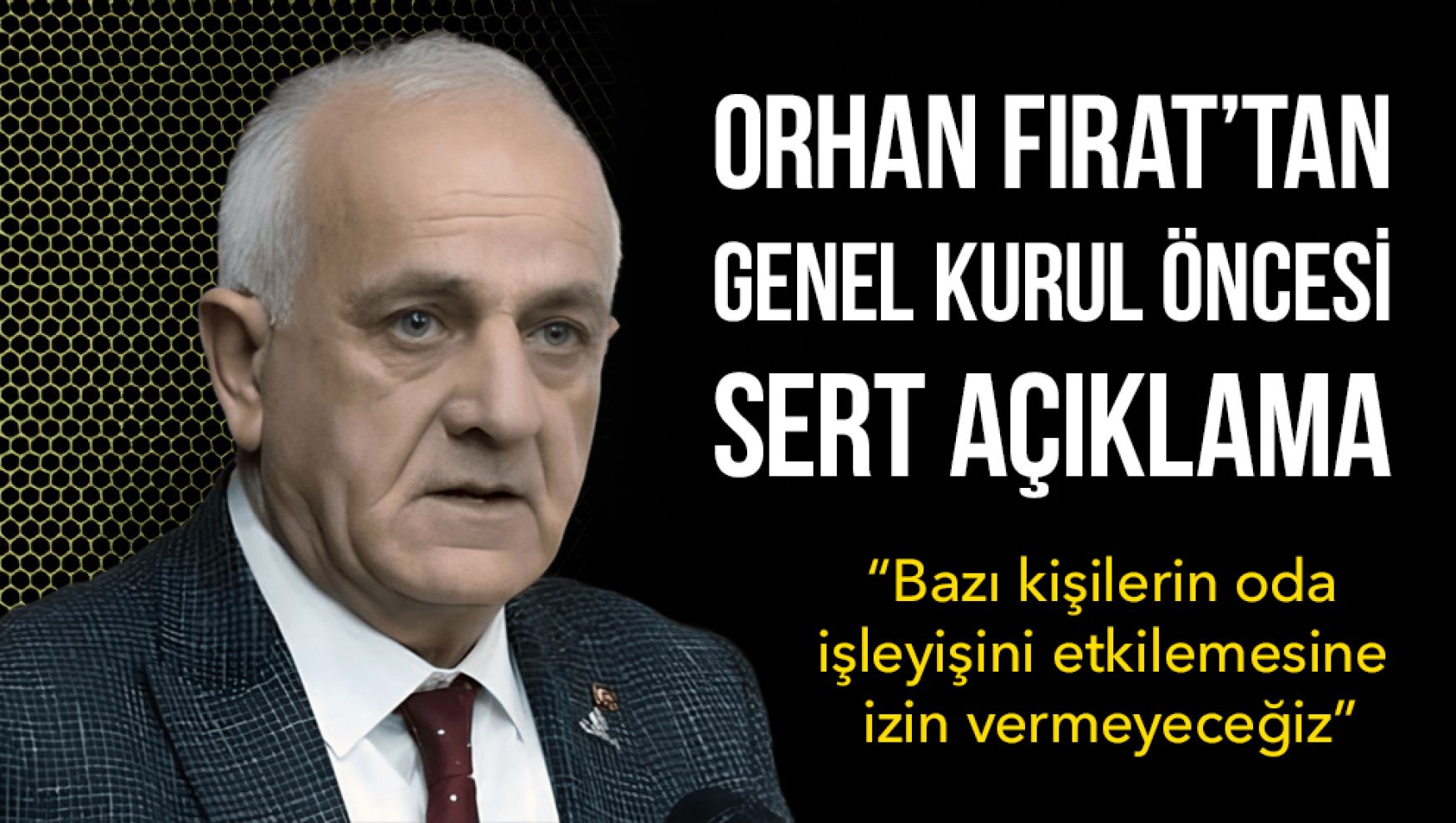Fırat, “Ben ve ekip arkadaşlarımın hiçbir kişiye ya da aday arkadaşlarımıza karşı bir zaafı yoktur ve olamaz. Listelerde yer bulamayıp aday adaylığı süreciyle dolaşan bazı şahısların kaos oluşturma çabası ne yazık ki gözlerden kaçmamaktadır. Mesleğimizle uzaktan yakından ilgisi olmayan bazı kişilerin hırsları yüzünden odamızın işleyişinin etkilenmesine izin vermeyeceğiz. Bu kişilerin sözlerine itibar edilmemesini temenni ediyorum” dedi.